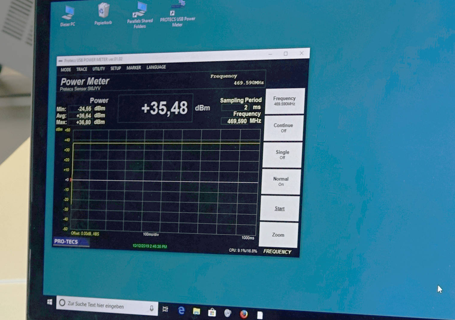 Die Darstellung der Sendeleistung erfolgt wahlweise in Watt oder dBm.