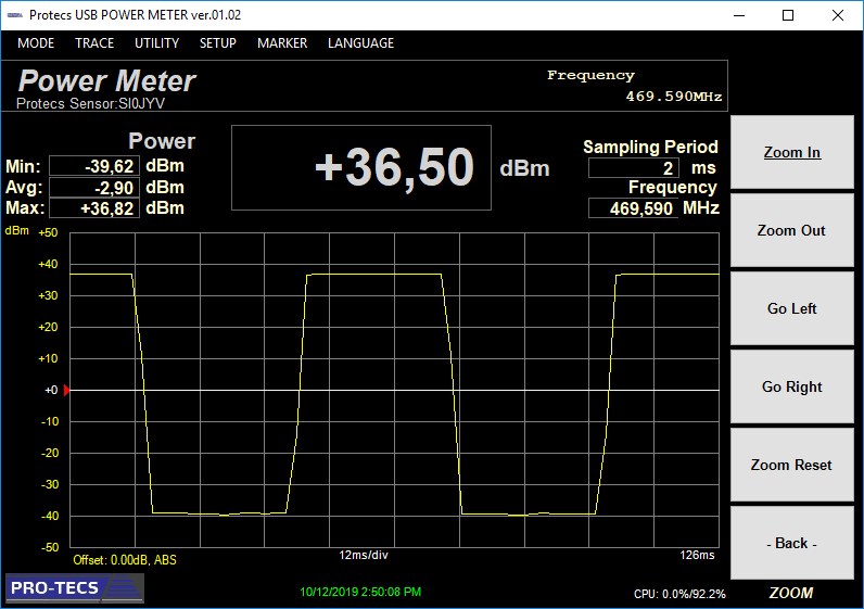 Nicht nur Messung der Leistung, Auch die Pulslänge oder die Länge der Pause zwischen Pulsen kann gemessen werden.